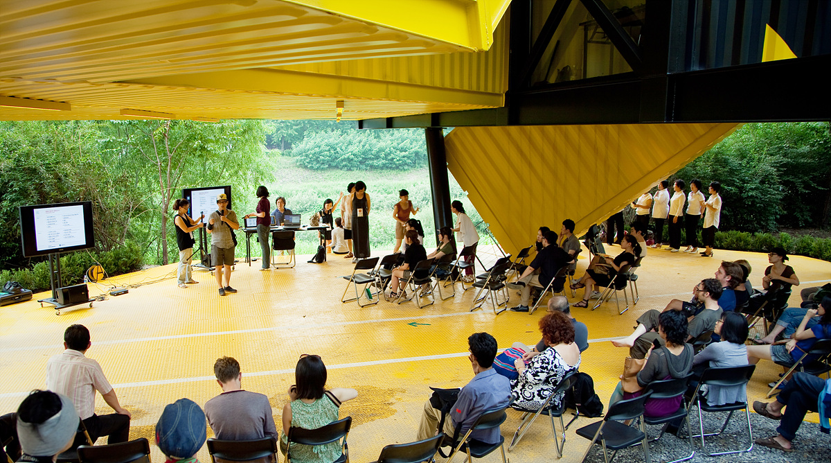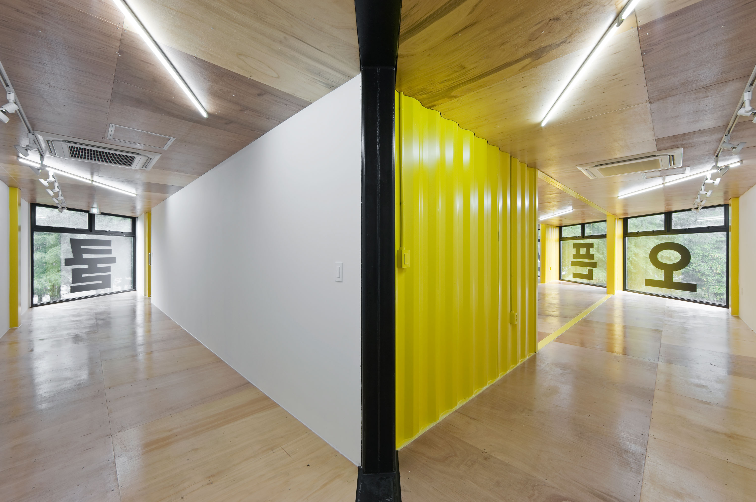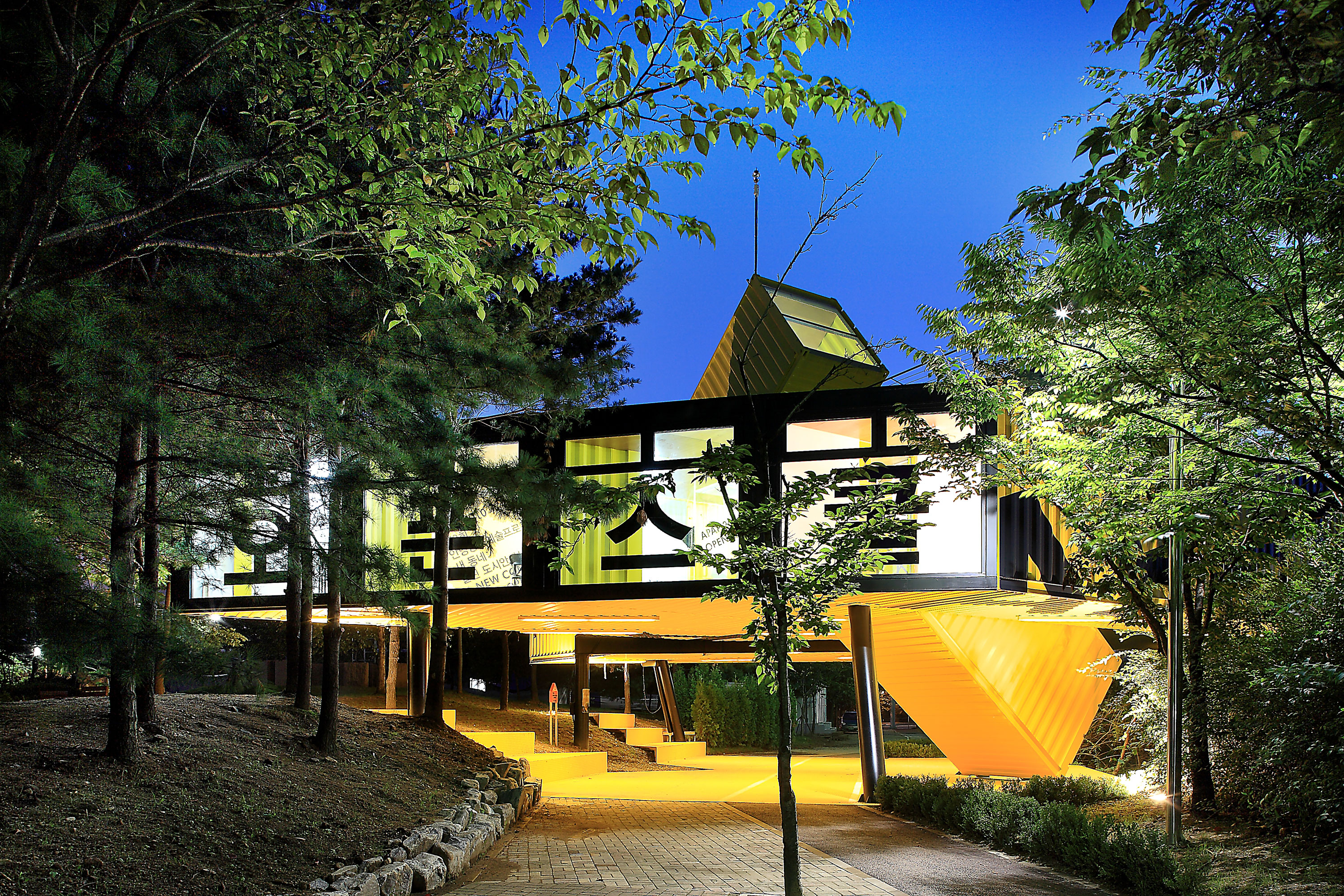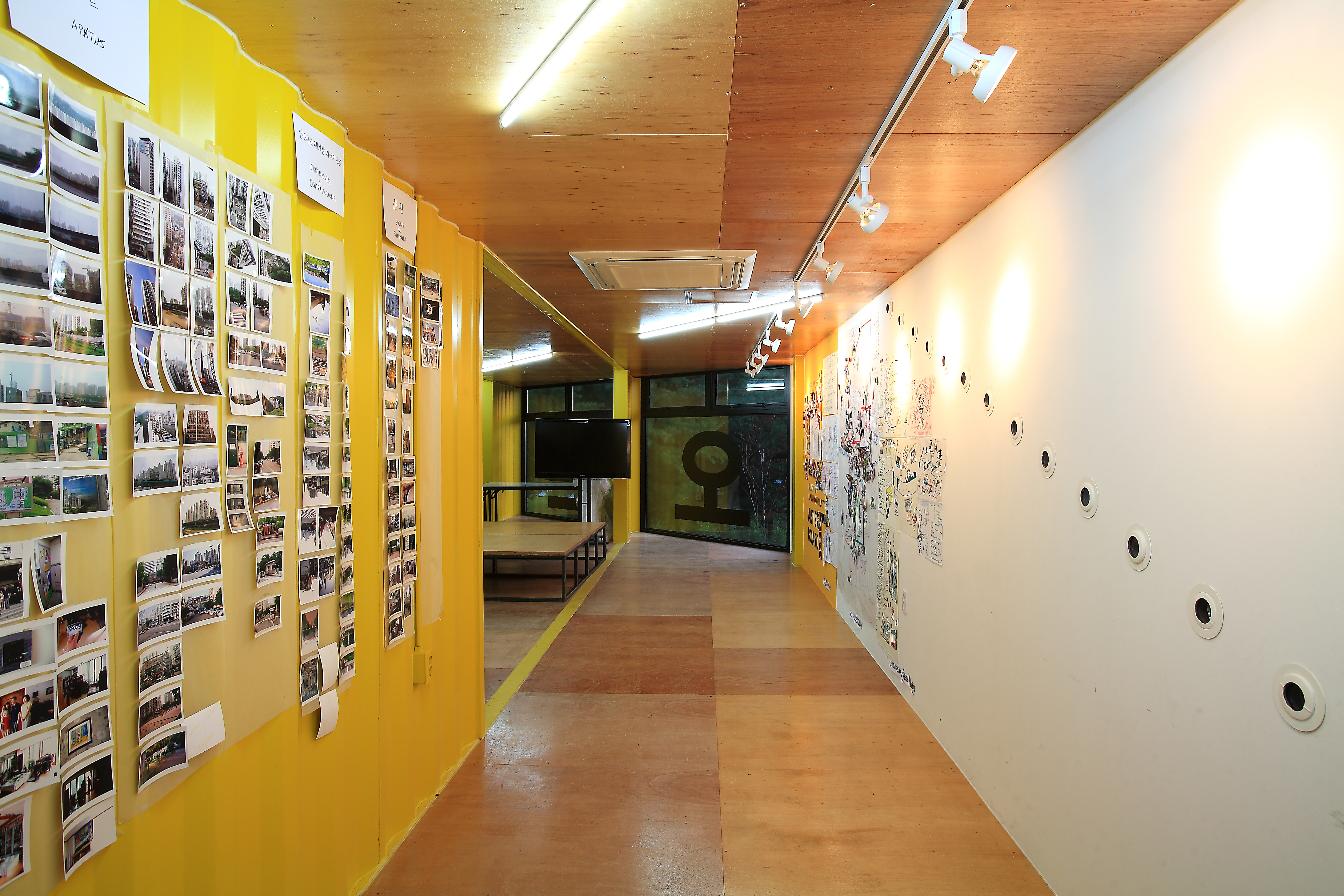 a community and cultural center is positioned along the river edge to activate the riverfront inviting walkers-by along the Anyang river in Seoul. APAP OpenSchool is a place for the community to question urban development. To question erasure of street fabric and texture, of shops and stories,