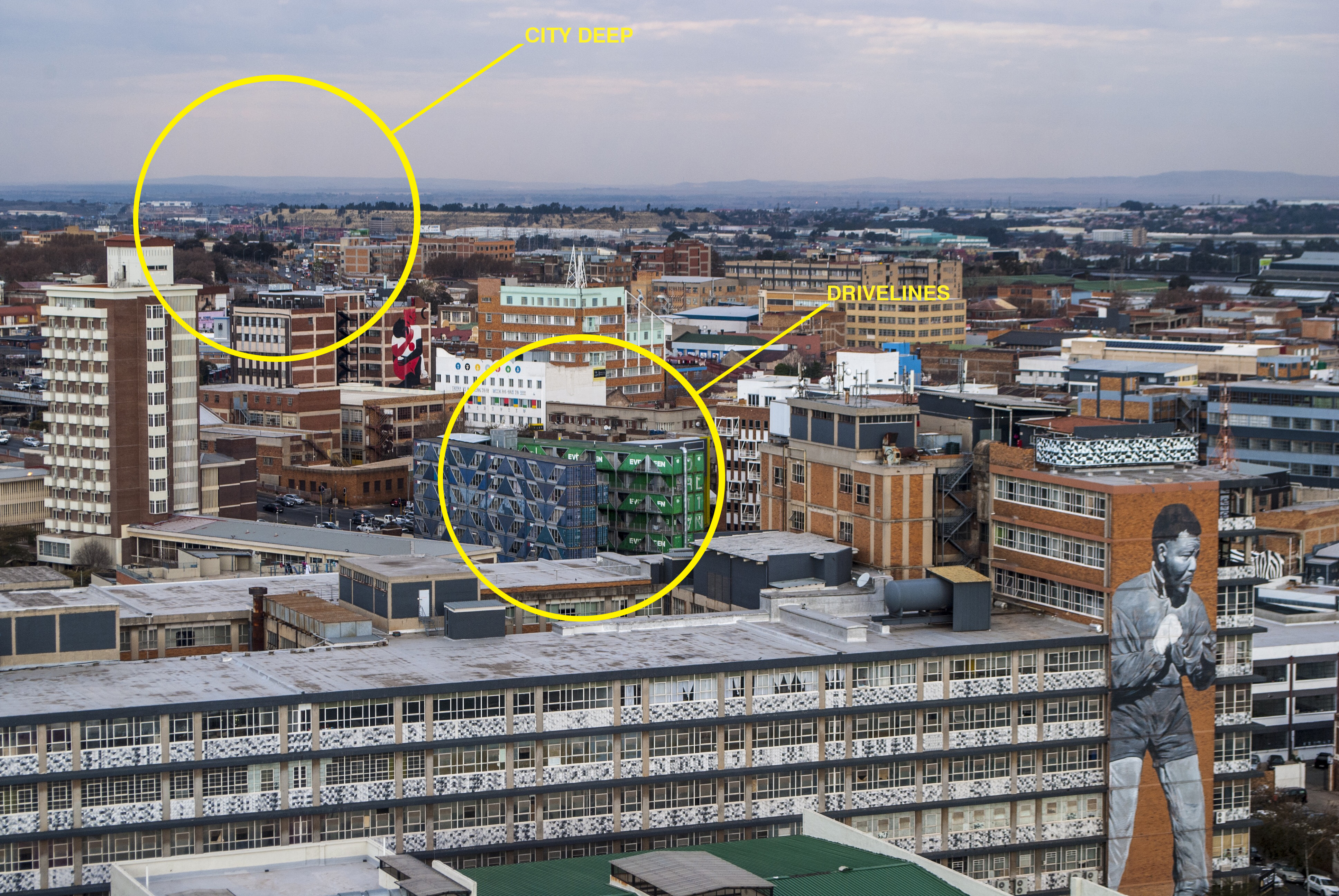 a residential building in Johannesburg, South Africa, DRIVELINES studios is located in Maboneng, an area of recent urban transformation and renewal that responds to the post-apartheid generation’s desire to repopulate the city’s downtown through new models of urban living