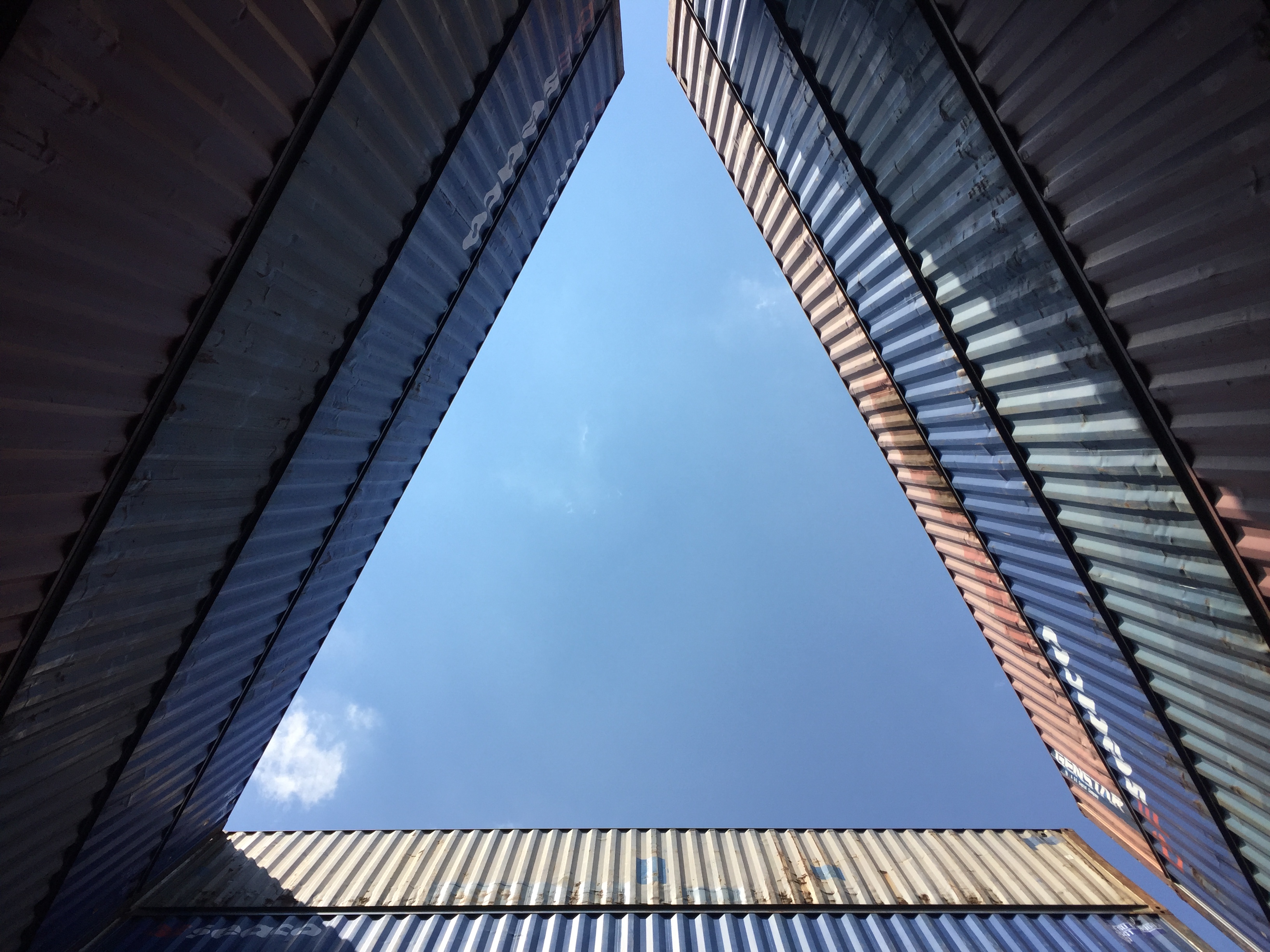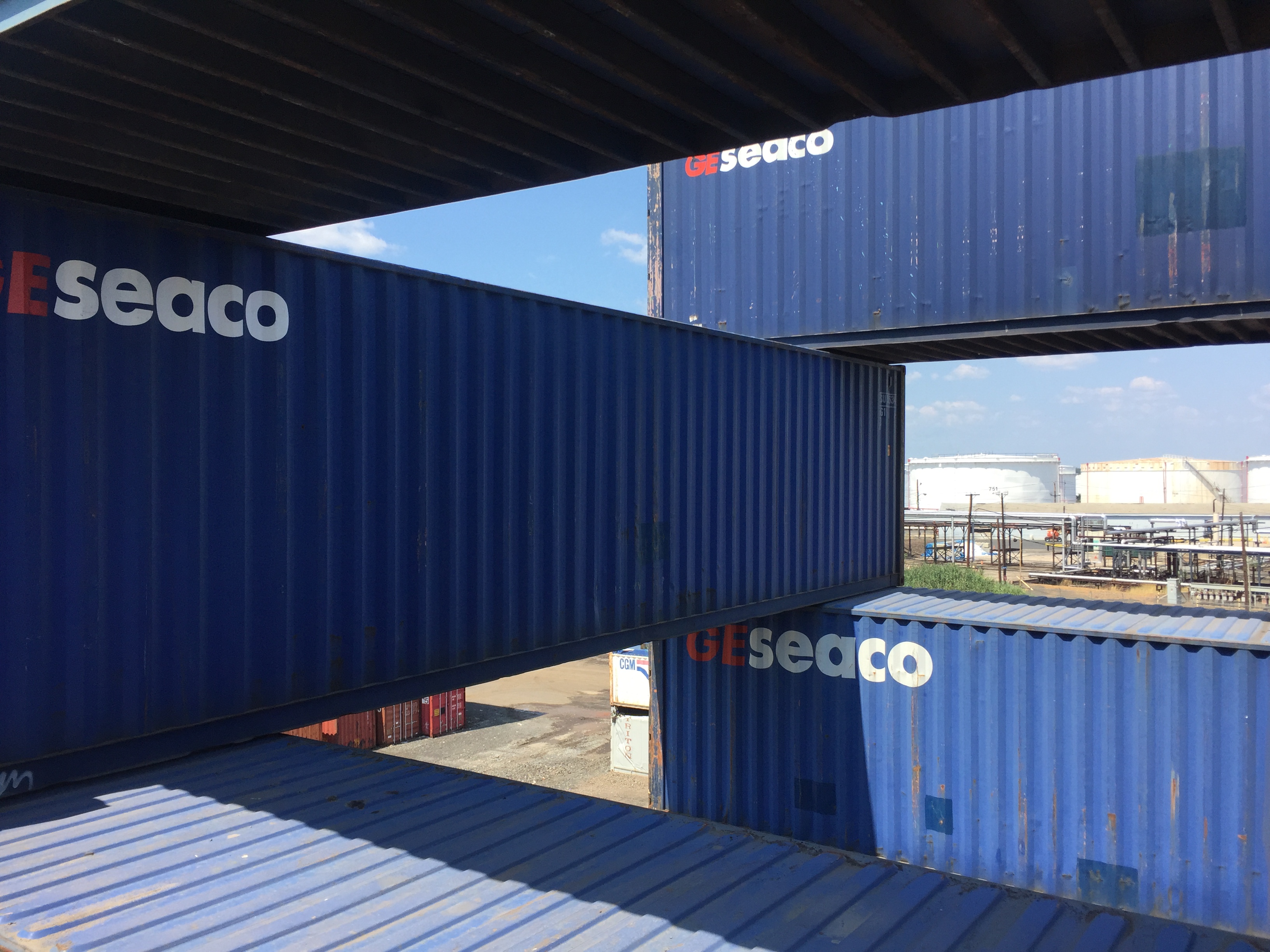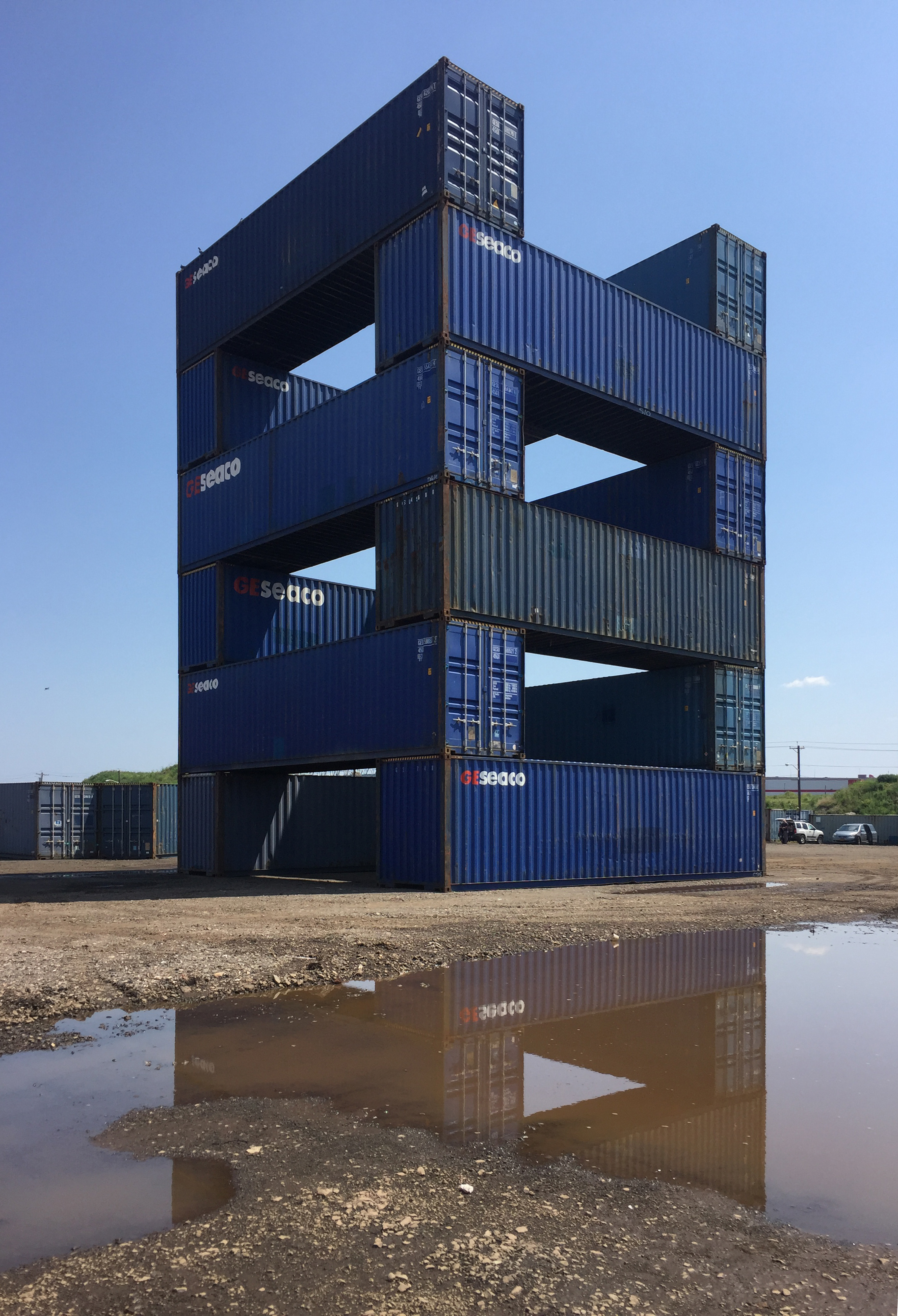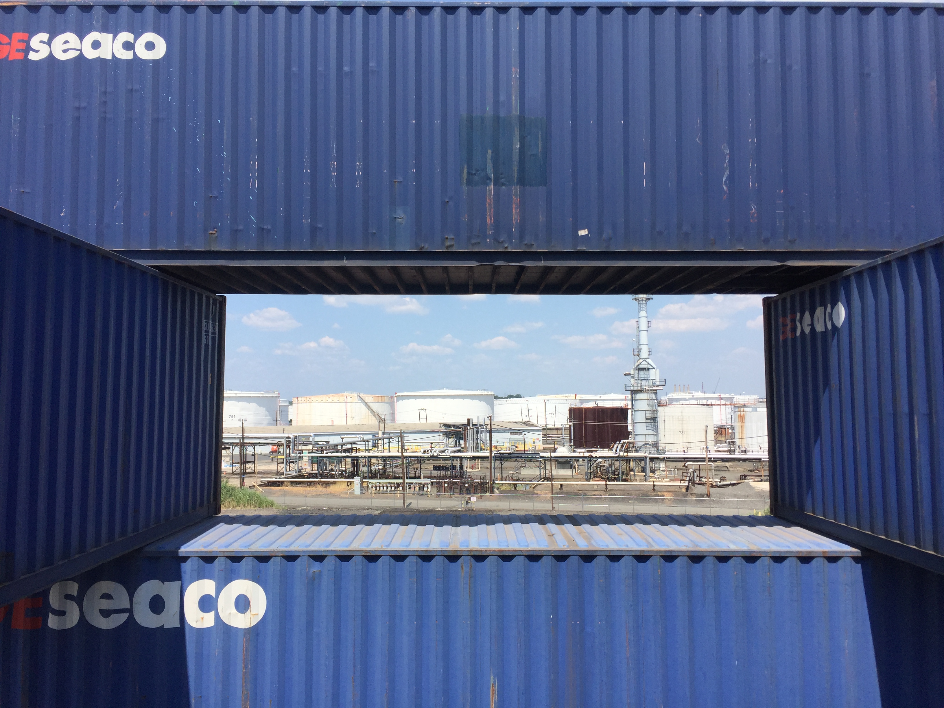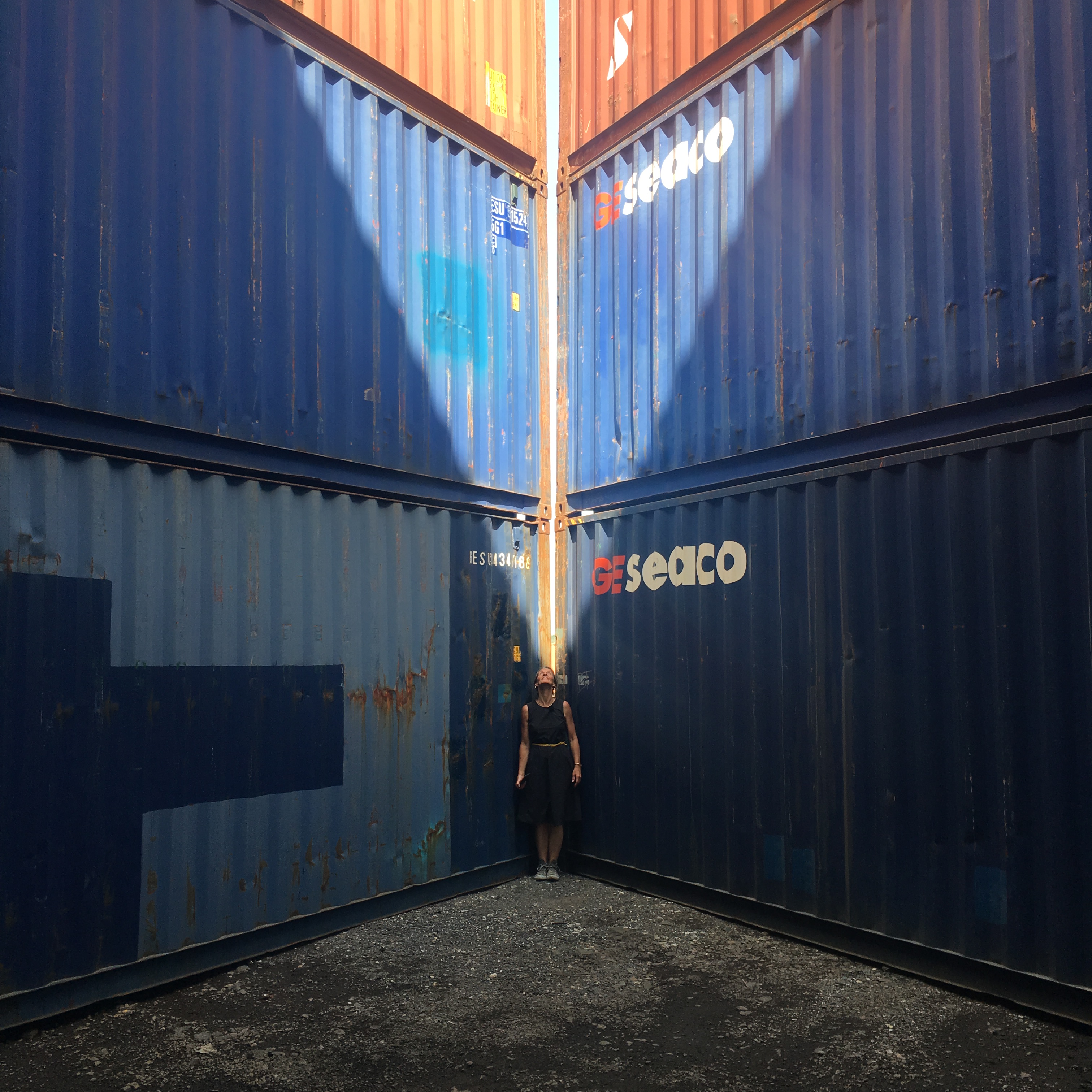 STACK 1 + 2 were installed in New Jersey in two days, simply using the ability of the forklift operator - thank you Steve Biko! - to place containers on top of each other with precision and without any additional securing hardware. We tested a square and a triangular stack with the intention of creating space - container stacks are generally very compact for efficiency