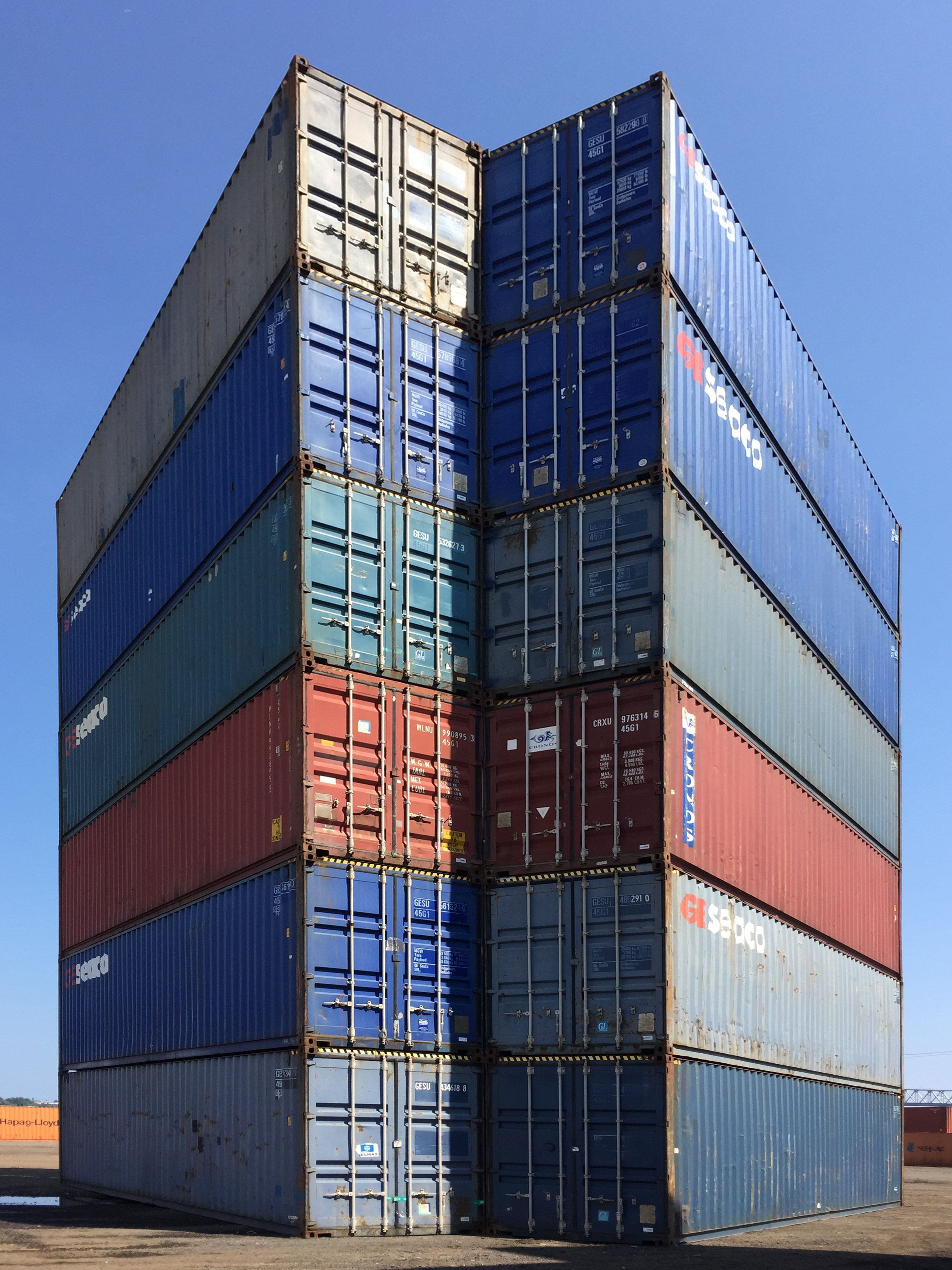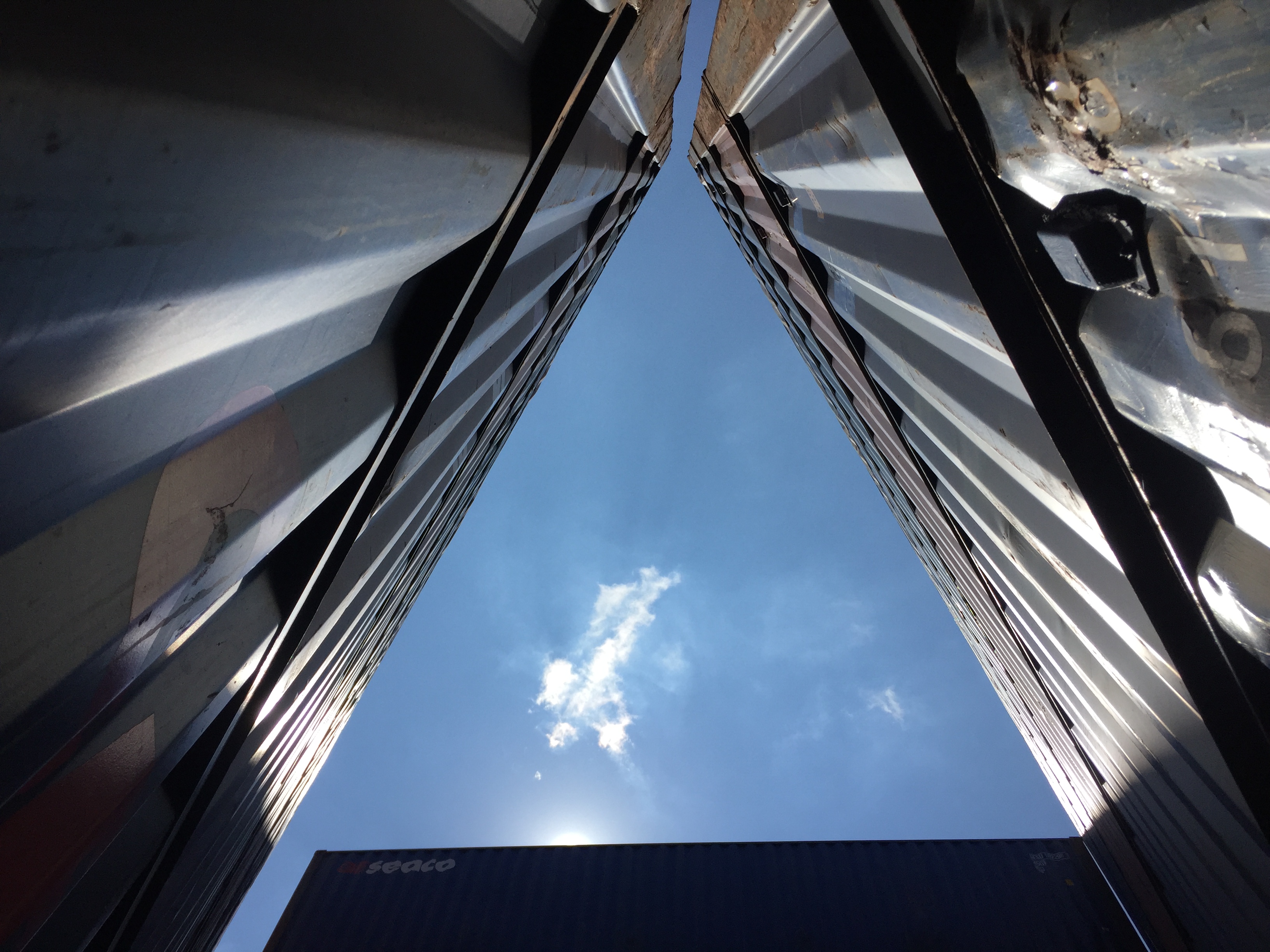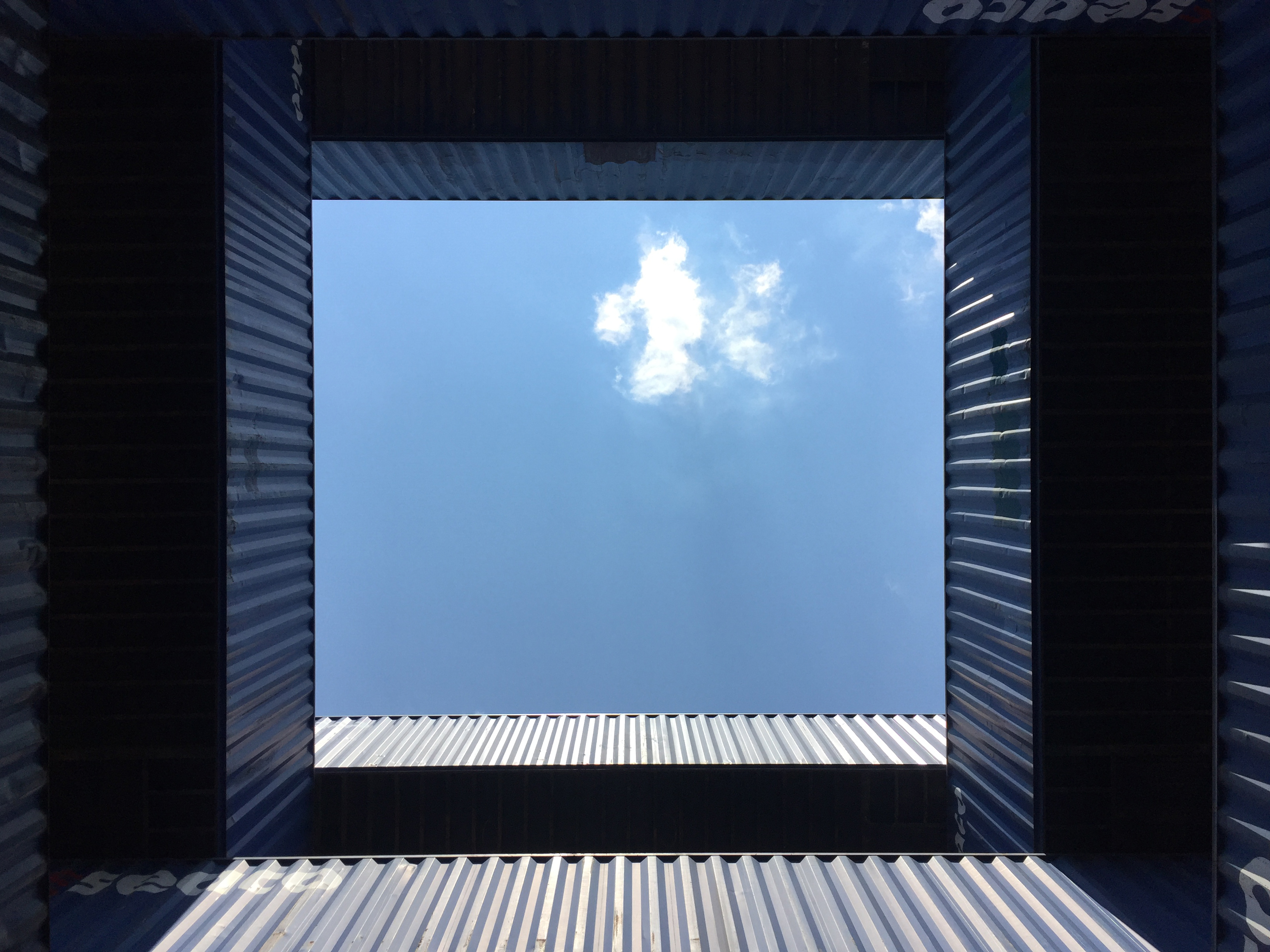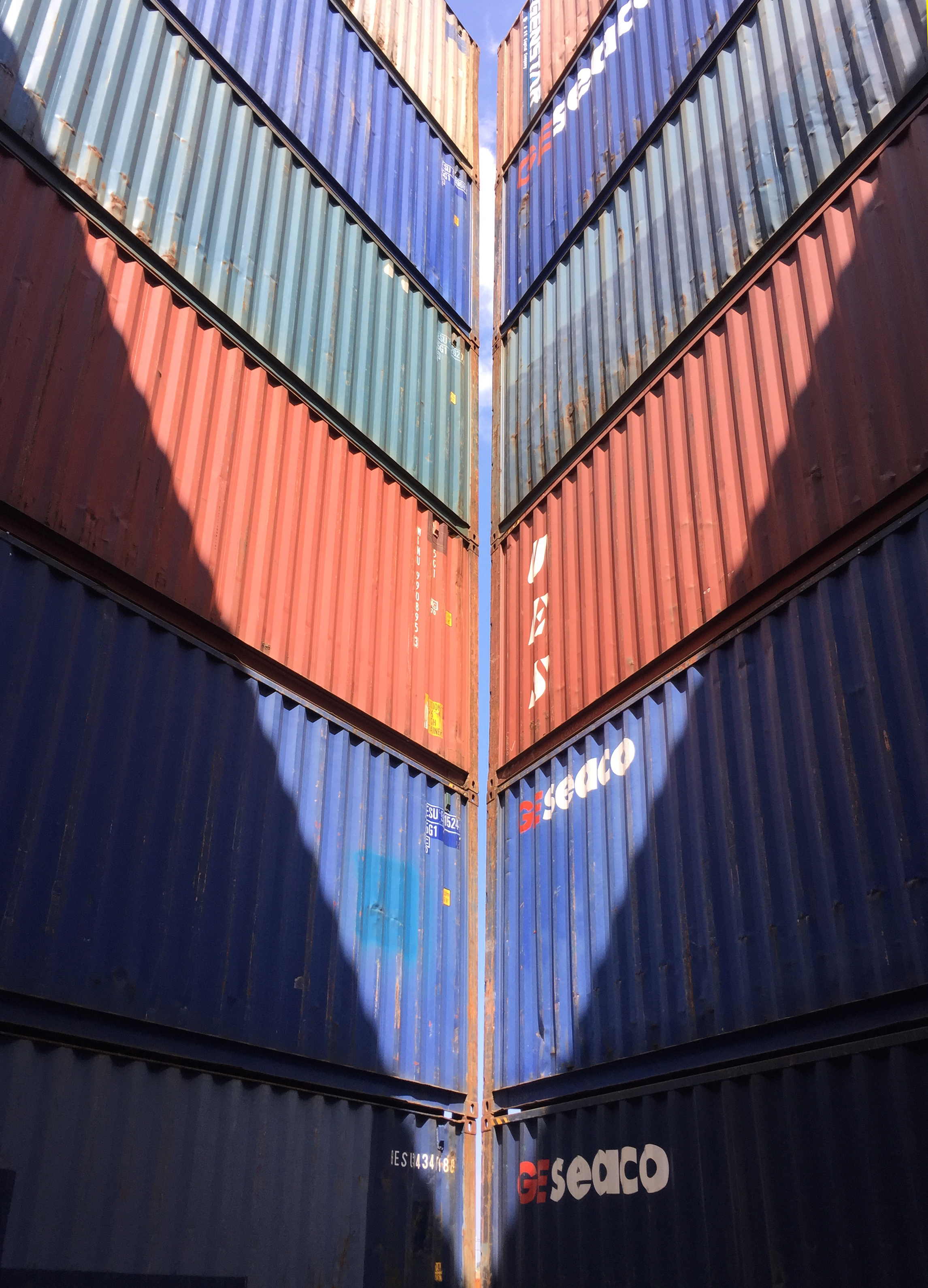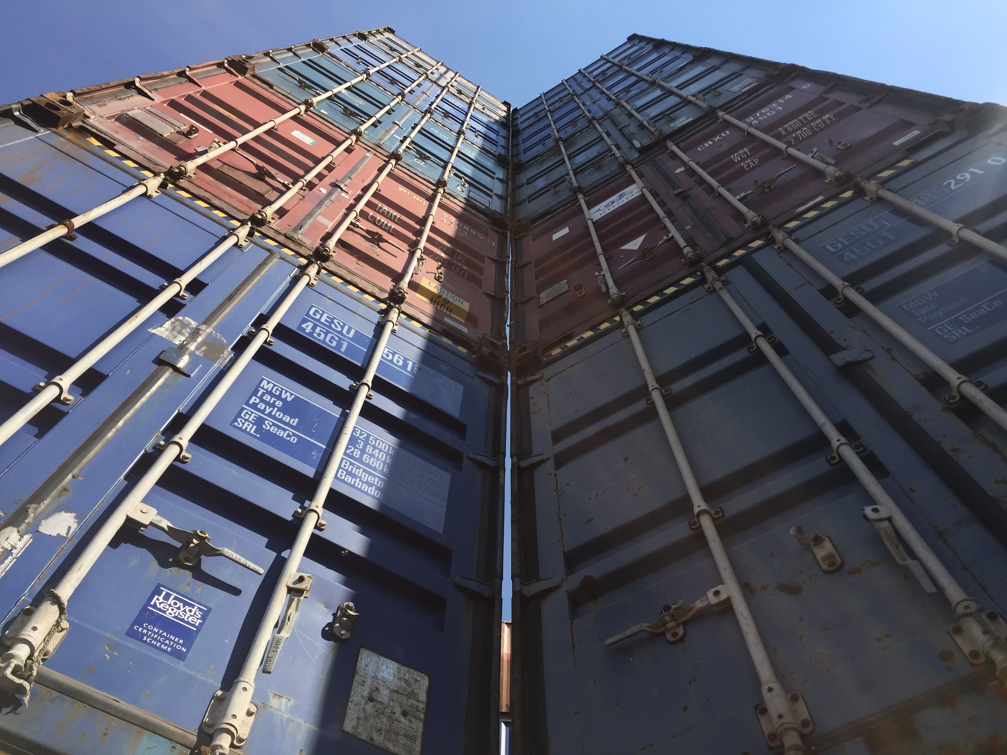 STACK 1 + 2 were installed in New Jersey in two days, simply using the ability of the forklift operator - thank you Steve Biko! - to place containers on top of each other with precision and without any additional securing hardware. We tested a square and a triangular stack with the intention of creating space - container stacks are generally very compact for efficiency